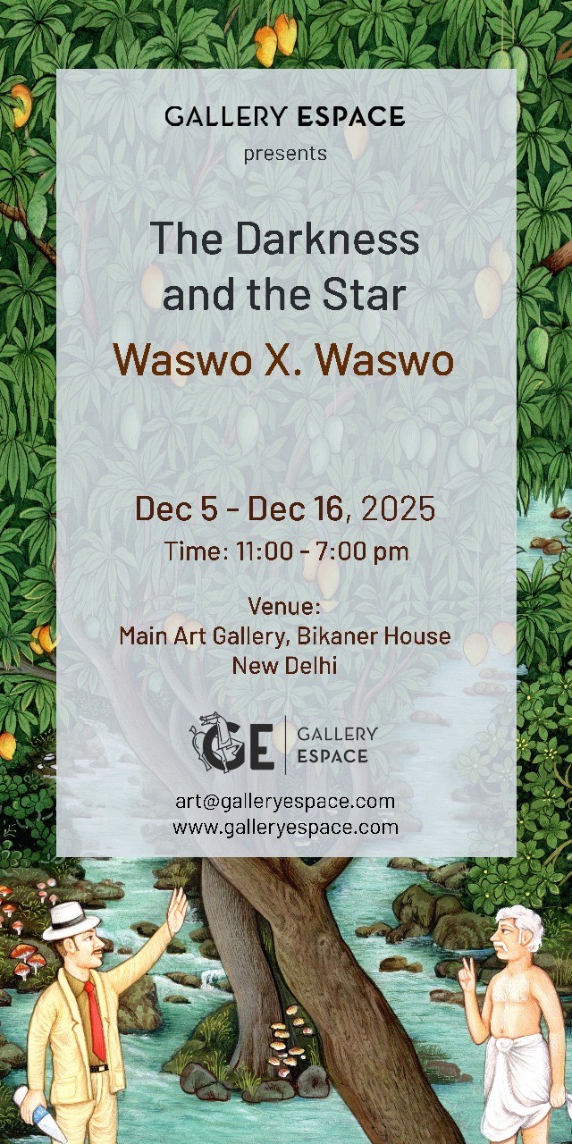 Gallery Espace presents The Darkness and Star by Waswo X Waswo on view from 5–16 December 2025 at the Main Art Gallery Bikaner House. Explore evocative visuals and immersive narratives daily from 11am to 7pm Experience a compelling artistic journey that blends imagination, reflection and storytelling