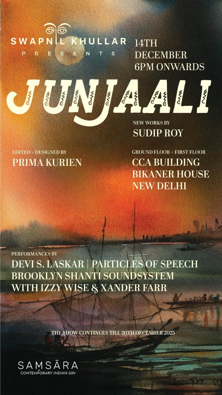 Swapnil Khullar presents Junjaali new works by artist Sudip Roy curated by Prima Kurien On view from 14th to 20th December 2025 at the CCA Building Bikaner House the exhibition invites viewers to experience Roy’s evocative visual language Open daily 11am–7pm