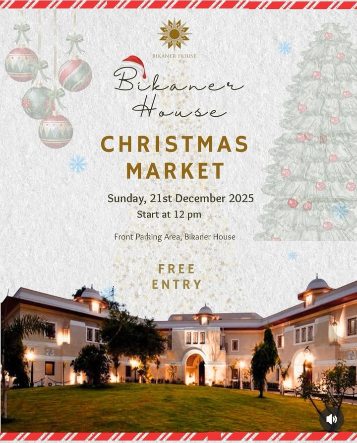 We are delighted to invite you to a festive Bikaner House Sunday Market on 21 st December 2025 12pm to 8pm where the spirit of Christmas comes alive at Bikaner House Enjoy a curated selection of theme-based products lively competitions, fun games, and interactive performances designed to bring joy and merriment to your weekend. Date & Time Sunday 21 st December 2025 (starting from 12 pm) Venue: Bikaner House, Front Parking Area (gate no 1) Highlights Holiday-themed stalls, creative contests live music, and performances that capture the magic of the season Come celebrate a merry, joyous Christmas with us and make the day unforgettable. We look forward to welcoming you!